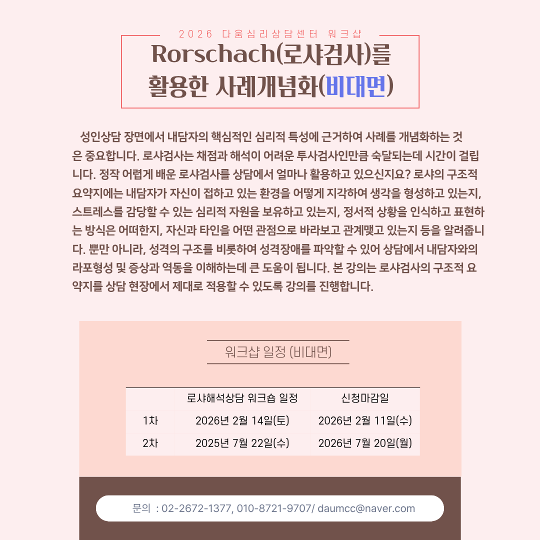 2026년 로샤검사를 활용한 사례개념화 웍샵 안내